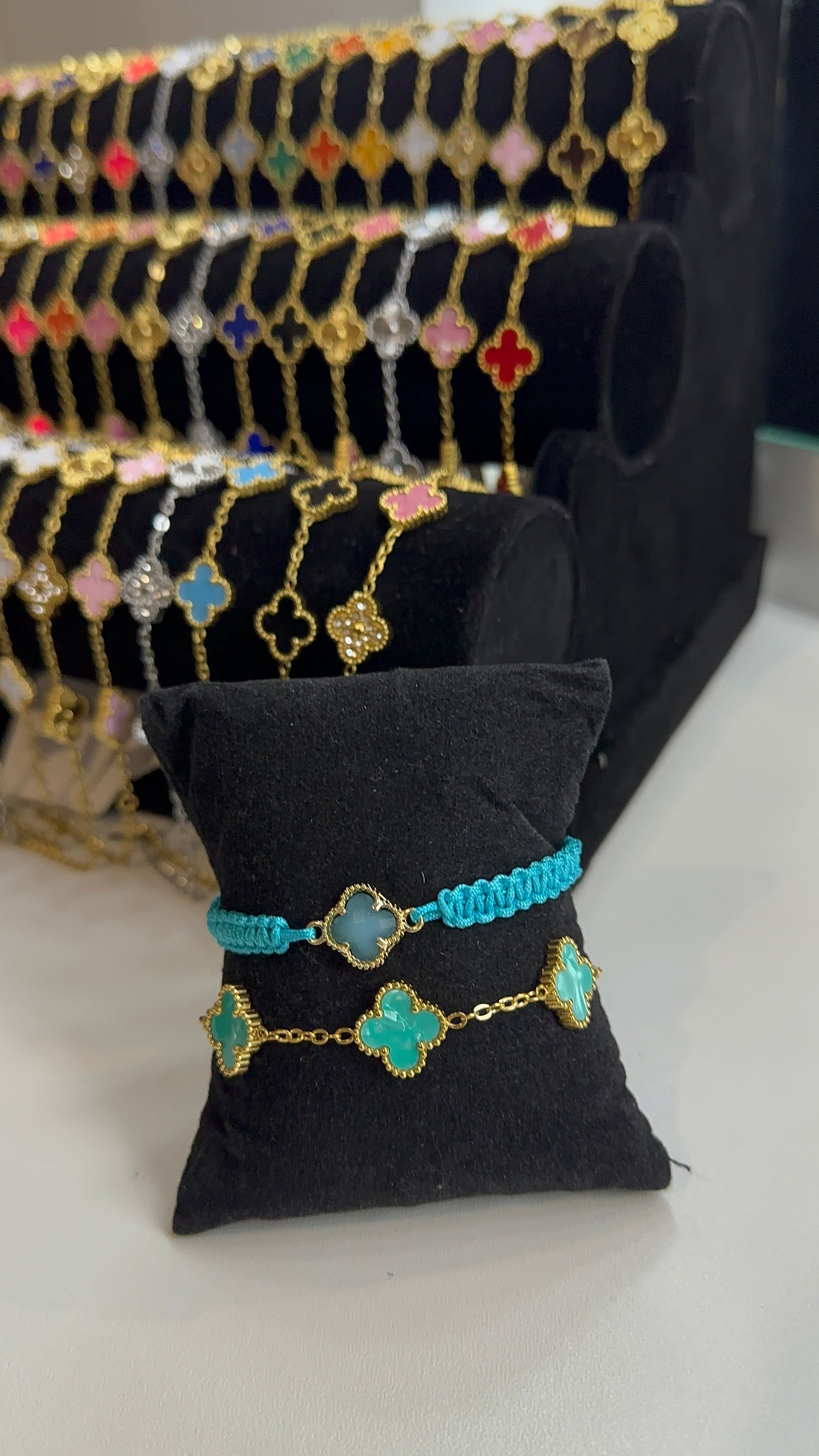 Ce coffret cadeau comprend un magnifique bracelet en acier inoxydable en forme de trèfle, ainsi qu'un bracelet corde avec un trèfle au milieu. Une brosse à baby hair, un chouchou et un gloss qui sont également inclus pour un look complet. Faites plaisir à vos proches avec ce coffret polyvalent.