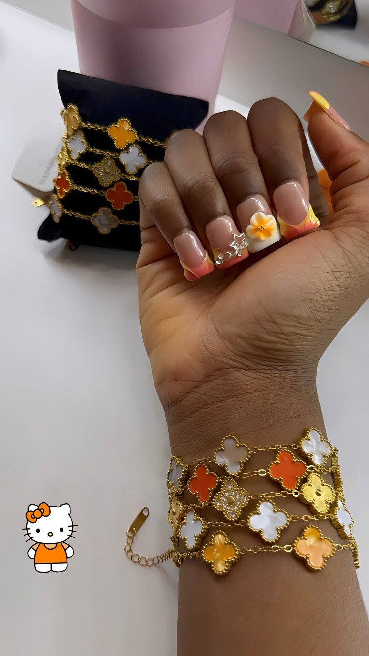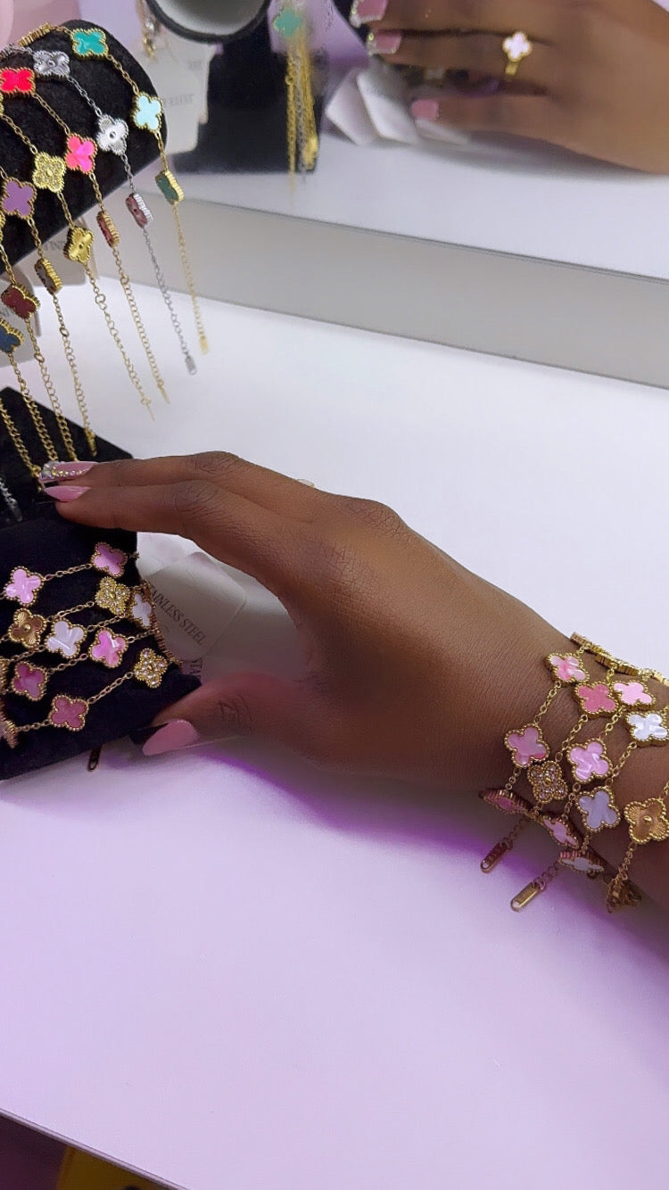 Ces cinq bracelets en acier inoxydable sont conçus dans le style van cleef, avec une touche de sophistication et d'élégance. Fabriqués avec du métal de qualité, ces bracelets sont durables et résistants à l'usure quotidienne. Ajoutez une touche de style à vos tenues avec ce lot de 5 bracelets en acier inoxydable.
